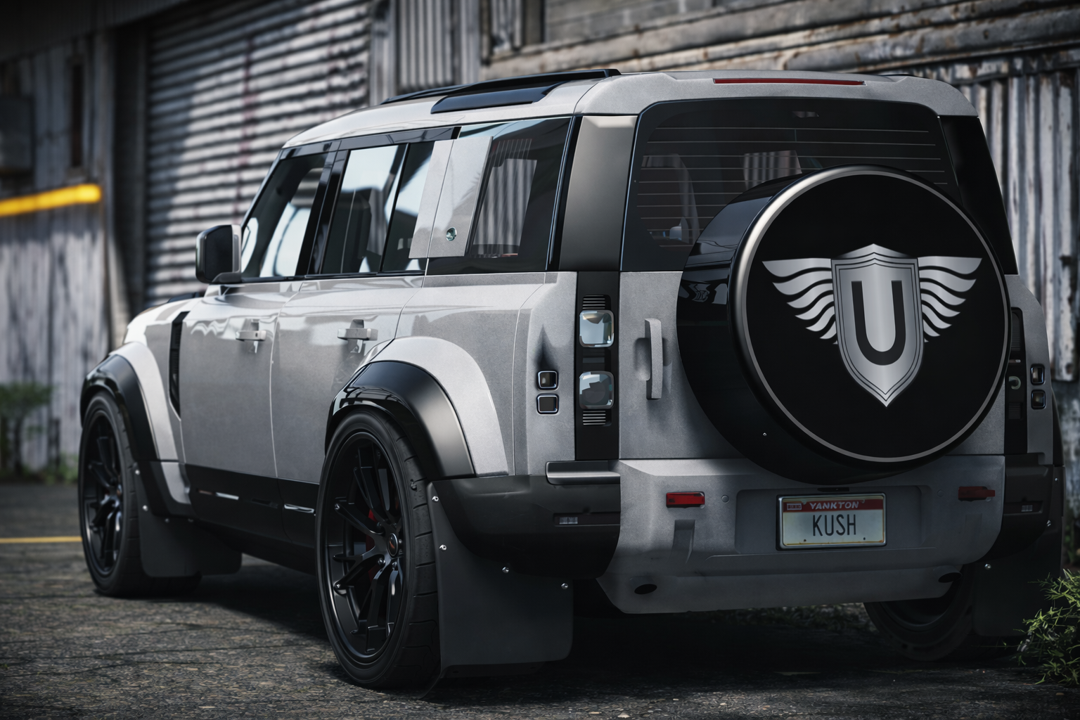 ديفندر معدلة بلمسة رياضية هجومية، تصميم واسع وجنوط كبيرة مع حضور قوي على الطريق.
